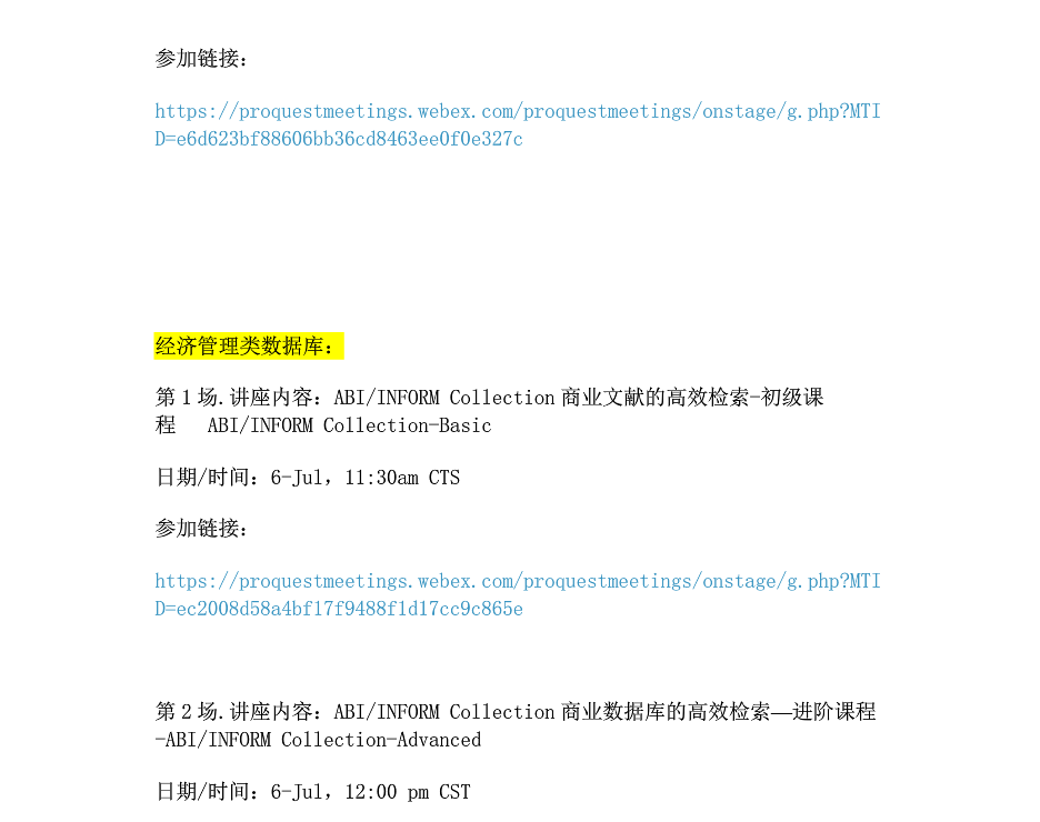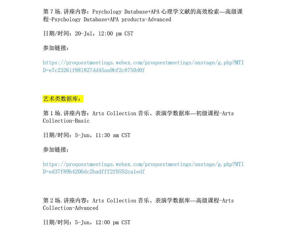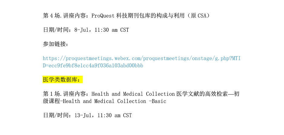 June and July 2020 ProQuest online class
