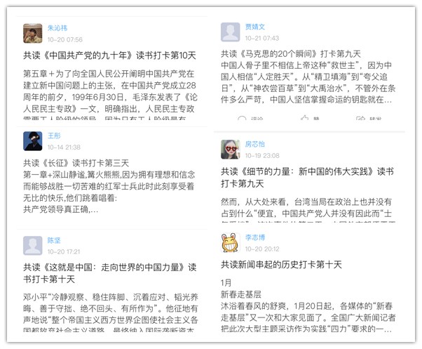 After the opening ceremony of the "Reading Month" activity, the students of our school set off an upsurge of reading the "Four History" together. With the Humanities and Social Development College, the College of Science, the College of Animal Medicine, the College of Horticulture, the College Student Reading Association, the Qihui Reading Club, the Shuifulian Literature Club and other colleges or associations, we have led the formation of 6 21-day reading training camp reading teams, training The camp named the team with the characteristics of the college or club, and led the surrounding students to participate in the activities of learning the "Four History". They carefully read the books on the reading list carefully selected by the school library, by extracting original sentences, making reading notes, and writing learning experience, they insisted on reading and punching together on the same learning platform to exchange learning experience. As of the tenth day of the co-reading activity, more than 2,000 people have participated in the reading check-in. The book sea is boundless, the open-book rational team (science college), the "Four History" and the Concord Wanbang team (University Student Reading Association) have successively carried out offline co-reading activities on the school’s Yulan Road. College), Yuanmoshuxiang·Yiqifengfa Team (Horticulture College) and other teams released activity content and co-reading methods through WeChat public accounts, which attracted a large number of students to join the co-reading activities. Cheng Tianxiao, the leader of the open-book rational team, said with deep feeling: "The spirit of the older generation of proletarian revolutionaries has once again deeply shocked me in the book "Red Starting Point: The Birth of the Chinese Communist Party". Living in a new era of happiness. We must be determined to make contributions, work pragmatically, and study for the prosperity of the motherland."