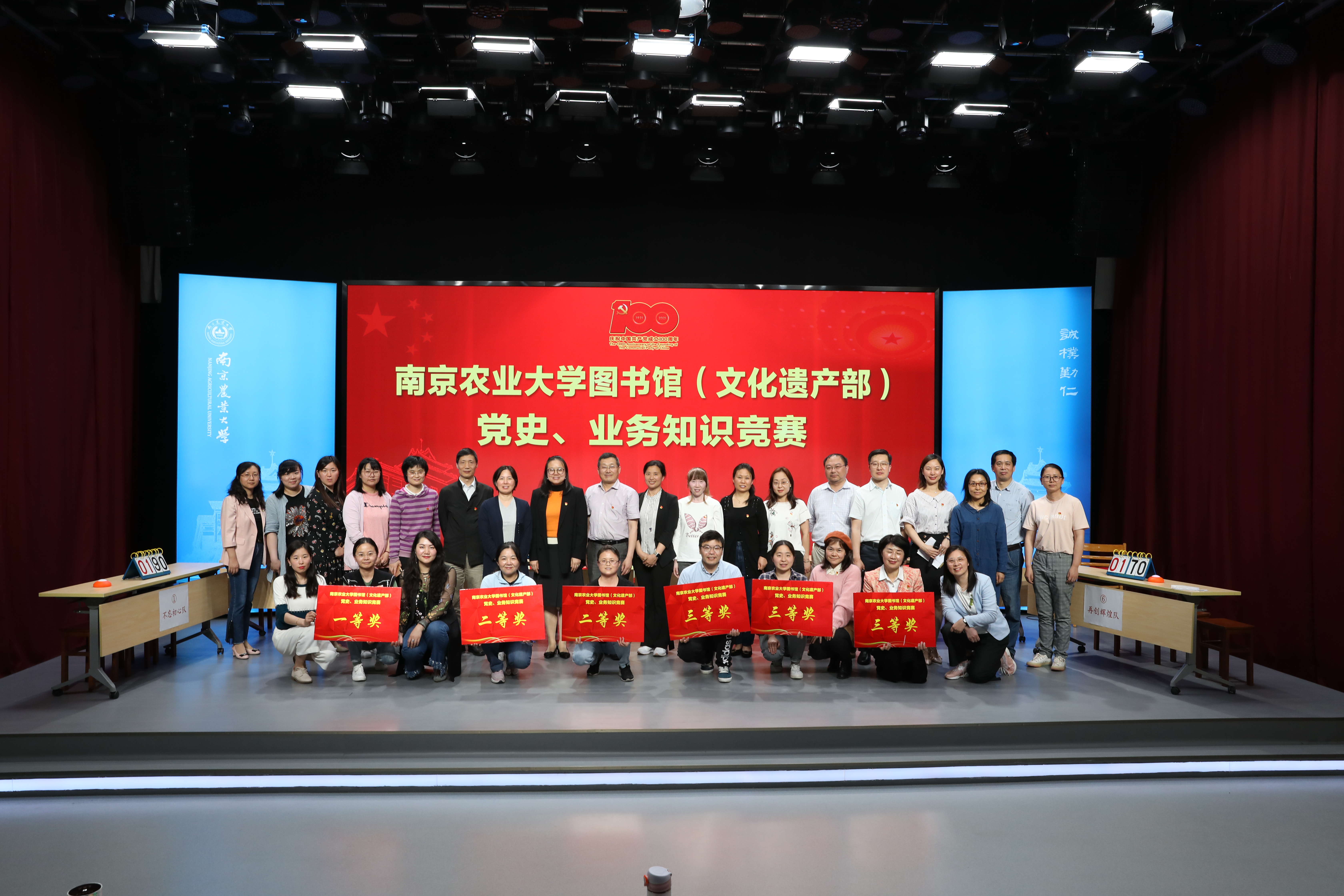 The competition is divided into required answers, co-answer questions, lucky audience answers and risky answer questions. Under the auspices of the two teachers Hu Yitao and Ren Huamei, after intense and fierce competition, the second representative team (the library office team) finally won the first place; the second prize winners were the first representative team (the reader service force) and the first Representative 3 teams (Personnel Archives Management Department, Comprehensive Archives Management Department, School History Museum Team); the third prize winners are the 4th Representative Team (Pukou Branch Reader Service Troop), the 5th Representative Team (Pukou Branch Clerk Team) and the No. Team 6 (Document Resource Construction and Technical Support Department, Reference and Consultation Team.)