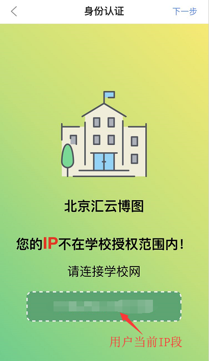If it is the campus network IP, click the next step in the upper right corner to register; if it is not the campus network IP , the verification cannot be passed, and the user needs to connect to the campus network before registering.