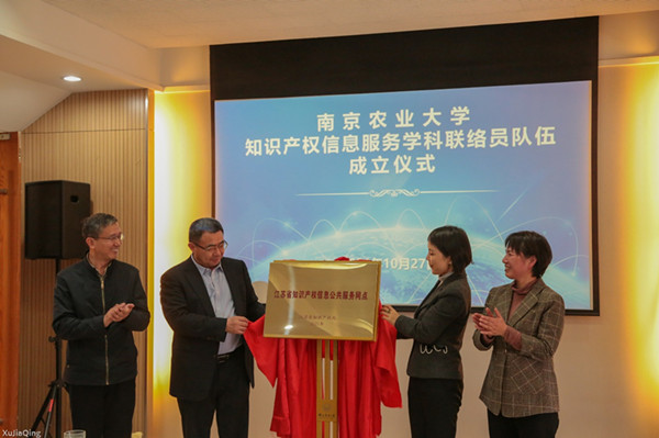 Subsequently, the participating leaders inaugurated the Jiangsu Provincial Intellectual Property Information Public Service Network of Nanjing Agricultural University. At the meeting, the list of the first batch of consultants and liaisons was announced, and the letter of appointment was issued.