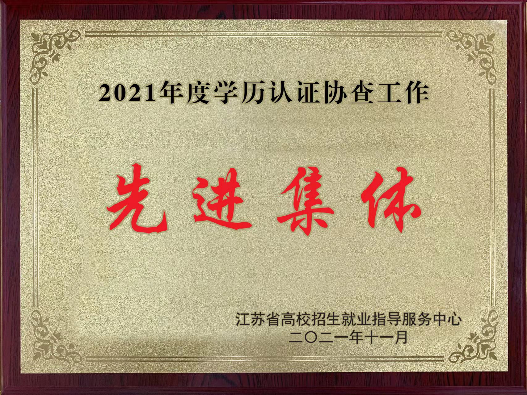 Recently, the Jiangsu Provincial College Enrollment and Employment Guidance Service Center (hereinafter referred to as the Provincial Recruitment) carried out the 2021 academic qualification verification and inspection work summary and commendation. The library (Cultural Heritage Department) was awarded the title of Advanced Collective, and Dai Xiujuan of the Personnel Archives Department was awarded the title of Advanced Individual.