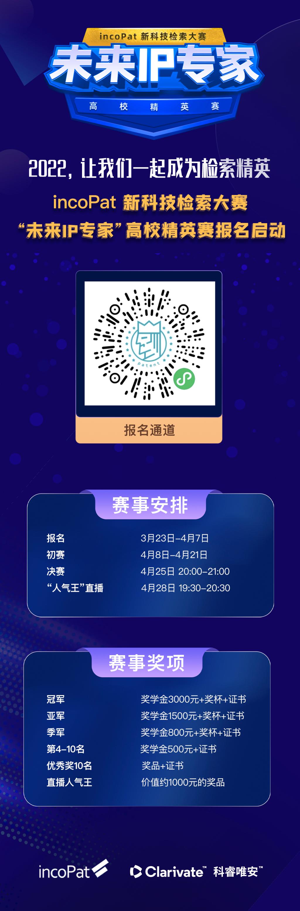 The 2022 incoPat New Technology Retrieval Competition "Future IP Expert" College Elite Competition registration channel is officially launched!