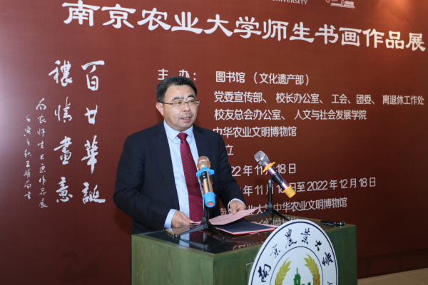 A hundred and twenty Nannong, the strings and songs are endless; the paintings are colorful, and the calligraphy and painting are gorgeous. On the morning of November 18th, Nanjing Agricultural University's "120th Anniversary Love and Painting" exhibition of calligraphy and painting works by teachers and students of Nanjing Agricultural University opened at the Museum of Chinese Agricultural Civilization. Dong Weichun, vice president and curator of the Chinese Agricultural Civilization Museum, Wang Hongyi, former deputy secretary of the Party Committee of Nanjing Agricultural University, Wang Yaonan, former vice president of Nanjing Agricultural University, Zhai You, vice president and secretary-general of Jiangsu Chinese Painting Society, president of Jiangsu Xu Beihong Research Association, Nanjing Bi Baoxiang, a professor of the Academy of Fine Arts of Normal University, and others attended the opening ceremony. The opening ceremony was presided over by Kang Min, Deputy Director of the Library and Deputy Minister of Cultural Heritage. Leaders, teachers and students of some units of our school attended and watched the exhibition.