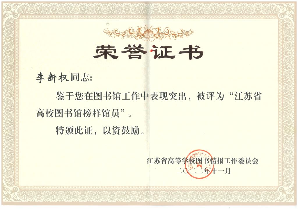 The conference commended 59 "Outstanding Contributors" of Jiangsu University Libraries, 33 "Exemplary Librarians" of Jiangsu University Libraries, 55 "Exemplary Librarians" of Jiangsu University Libraries, 22 Jiangsu University Libraries The library's "Excellent Academic Research Team" and 40 Jiangsu University Libraries "Excellent Academic Research Workers". Our library was rated as "Excellent Academic Research Team of University Libraries in Jiangsu Province". Deputy Director Tang Huiyan was awarded the "Model Librarian of Jiangsu University Libraries", Director Li Xinquan was awarded the "Model Librarian of Jiangsu University Libraries", and Director Hu Yitao was awarded the honor of "Excellent Academic Research Worker of Jiangsu University Libraries".