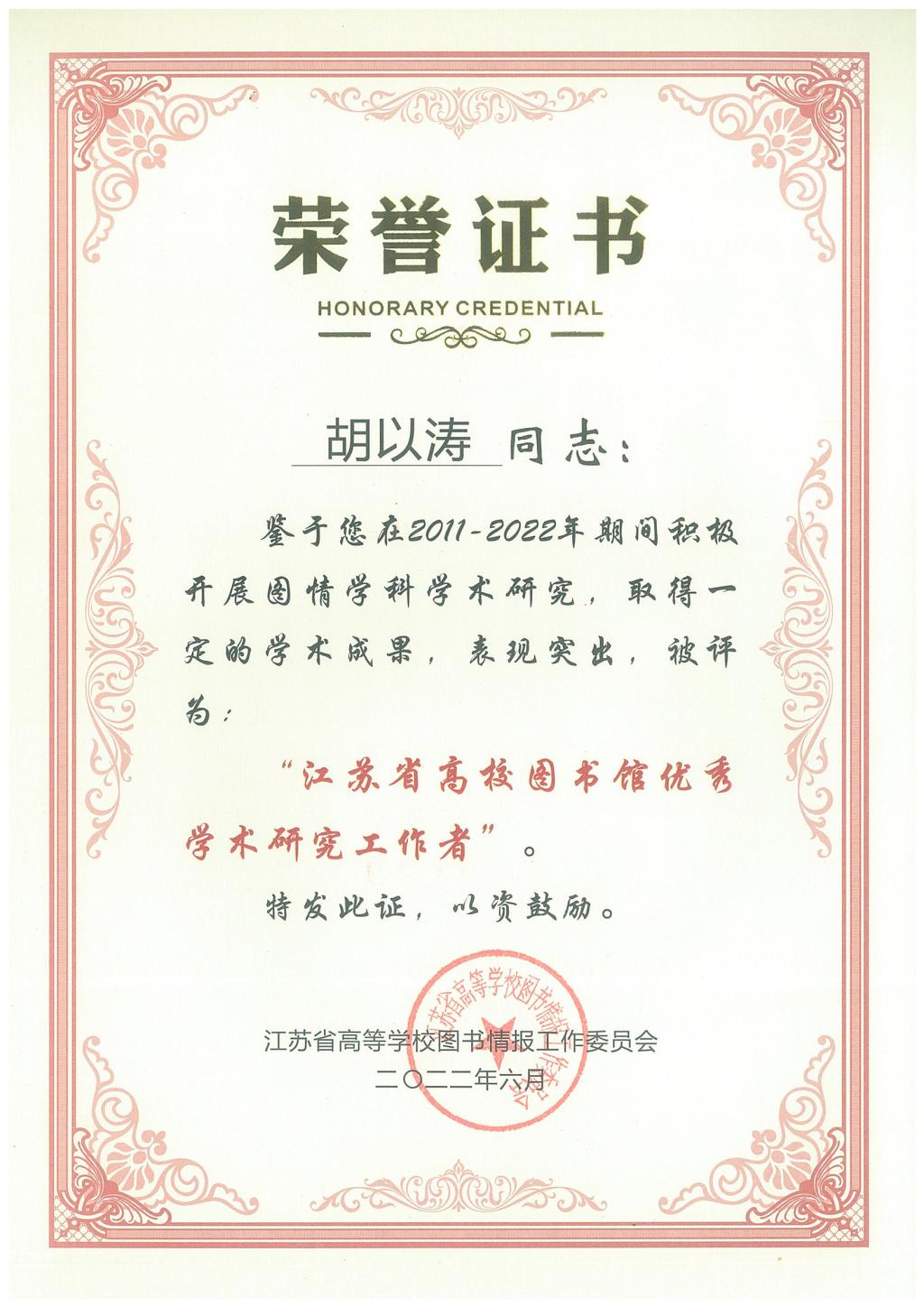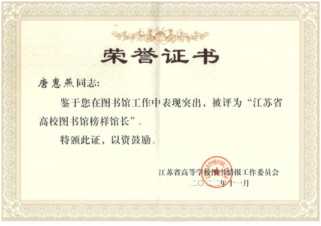 Our school library has won many honors from the Jiangsu Higher Education Library and Information Working Committee