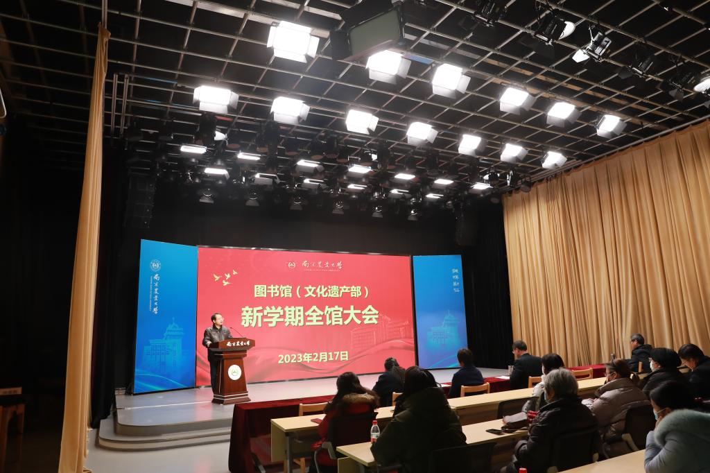 On the afternoon of February 17th, the Library (Cultural Heritage Department) held a new semester general conference and an academic report meeting by Director Huang Xianjin of Nanjing University Library in the studio on the 6th floor of Weigang Library. All staff of the library (Cultural Heritage Department) attended the meeting, which was presided over by the director (minister) Guo Zhongxing.