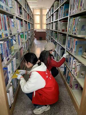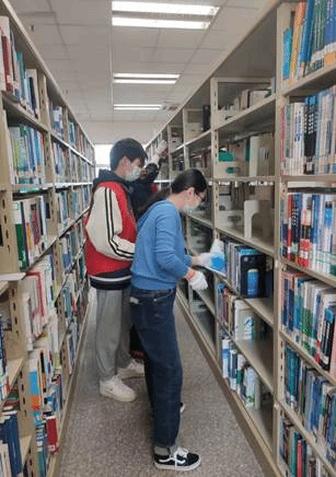 On the afternoon of April 6, 20 volunteers from the Volunteer Department of the Youth League Committee of the School of Information Management—the Red Cross Society participated in the work of putting the new library on the shelves again.
