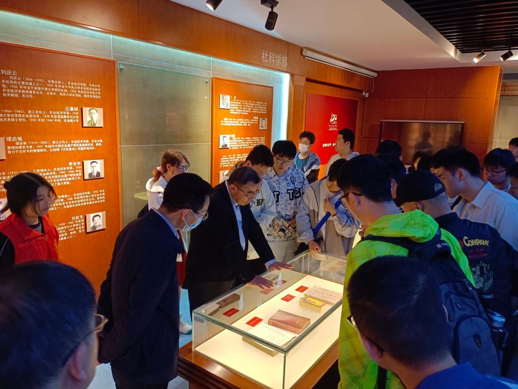 On May 7th, Professor Dong Weichun, Professor Yao Zhiyou, Associate Professor Liu Xiaoguang, the lecturers of the general course "A Brief History of Nannong", and some students who selected this course came to the school history museum for visits and on-site teaching activities. Also participating in the activity were Kang Min, Deputy Director of the Library (Cultural Heritage Department), staff of the School History Museum, and student commentators.