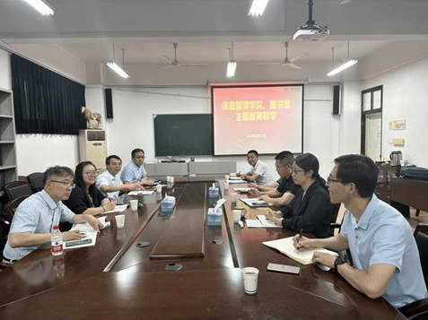 On the morning of June 12th, the library (Department of Cultural Heritage) and the School of Information Management carried out a joint study activity on the theme of "Traditional Culture Inheritance, Schools and Libraries Hand in Hand to Create a New Chapter" in the meeting room D503 of the teaching building. The leadership teams of the two units participated this event. The event was co-chaired by Zhu Shigui, Secretary of the Party Branch of the Library (Ministry of Cultural Heritage), and Zheng Dejun, Secretary of the Party Committee of the School of Information Management.