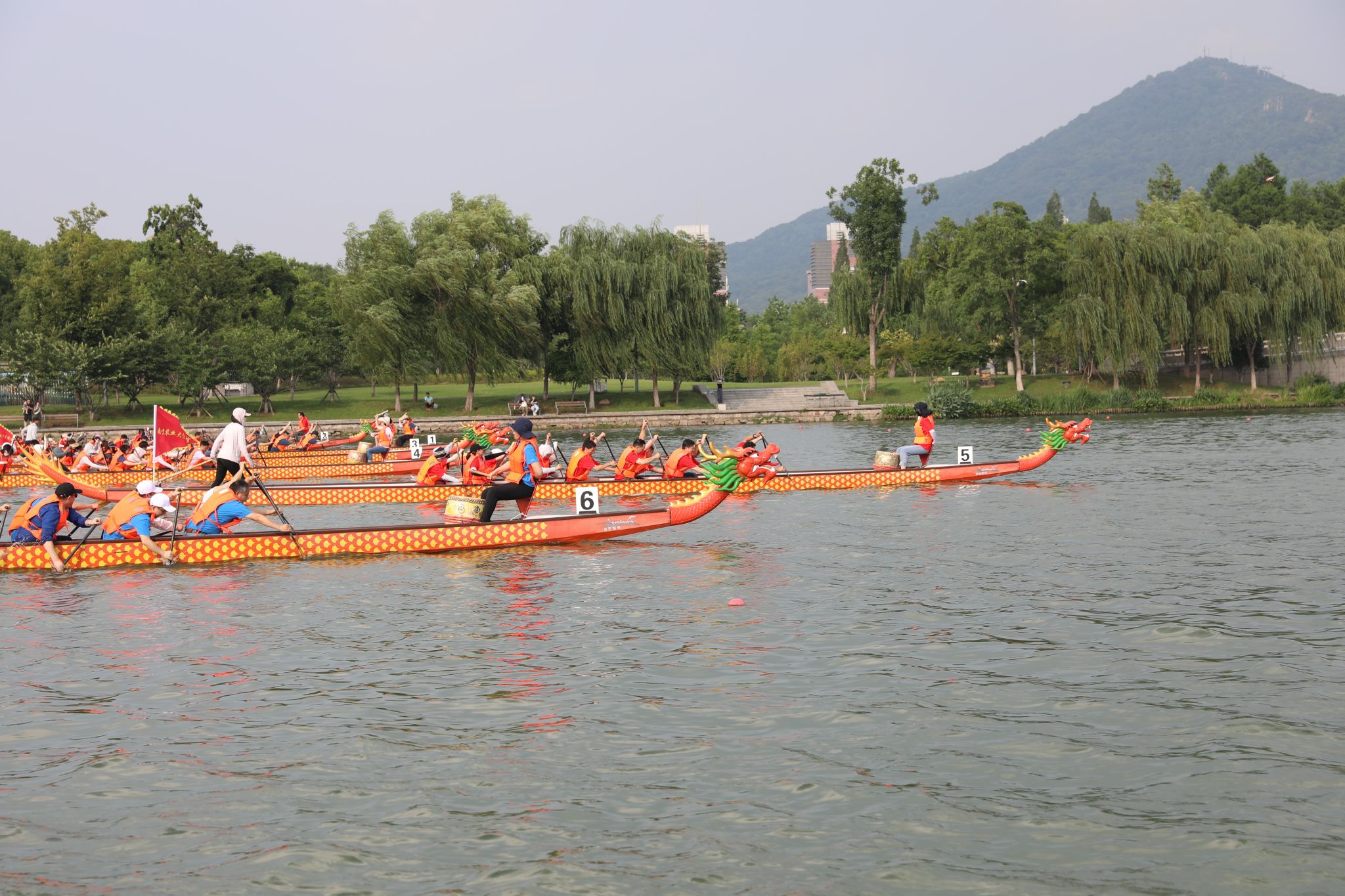 This dragon boat race has 6 waterways with a length of 300 meters. Before the race, professional dragon boat coaches from the dragon boat sports base will provide technical training. Everyone will study diligently and have great interest. With the start of the competition, the six teams competed on the Xuanwu Lake. The team members rowed hard and fought with high morale. The six dragon boats chased each other at full speed. Drums and shouts kept rising. The team from the library of Nanjing Agricultural University (Cultural Heritage Department) made concerted efforts and rowed in a neat and consistent manner, finally winning the first place in the dragon boat race.
