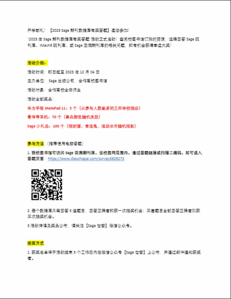 "2023 Sage Database Online Question Answering with Prizes" Activity