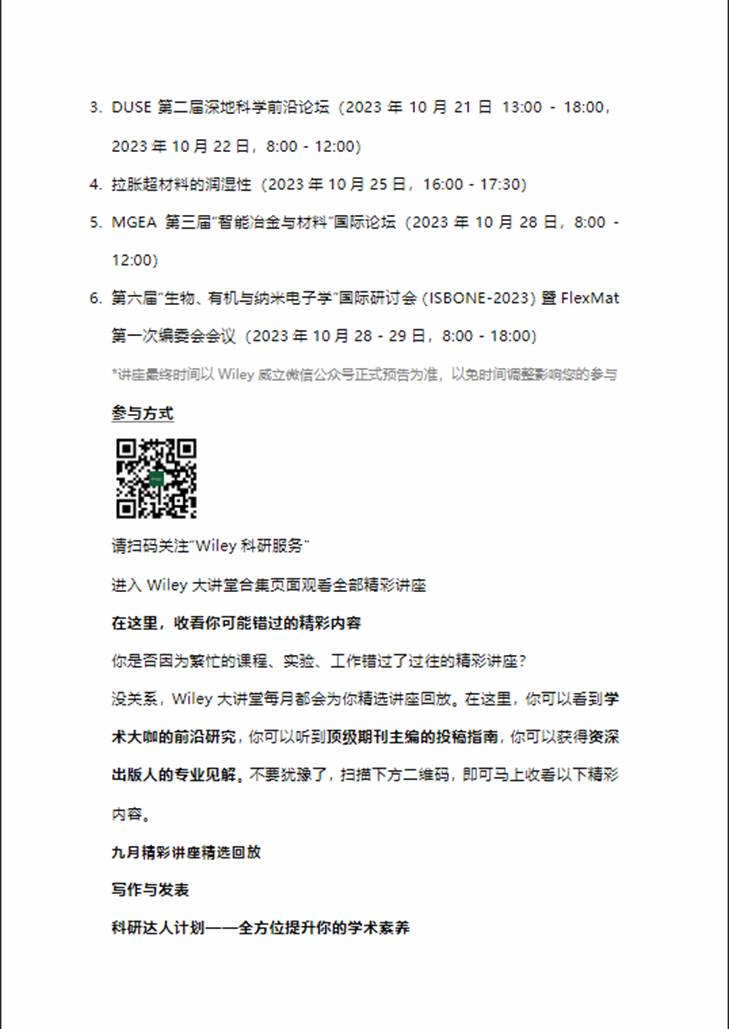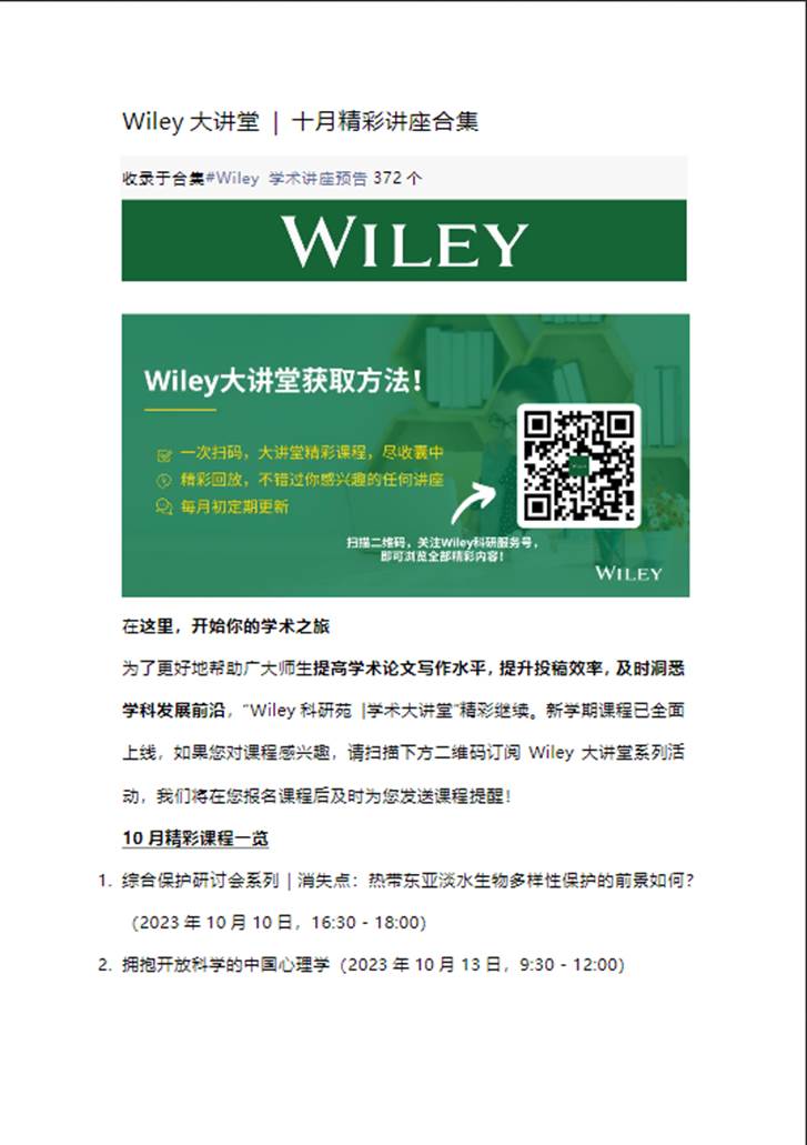 "Wiley Research Garden|Academic Lecture Hall" List of exciting courses in October