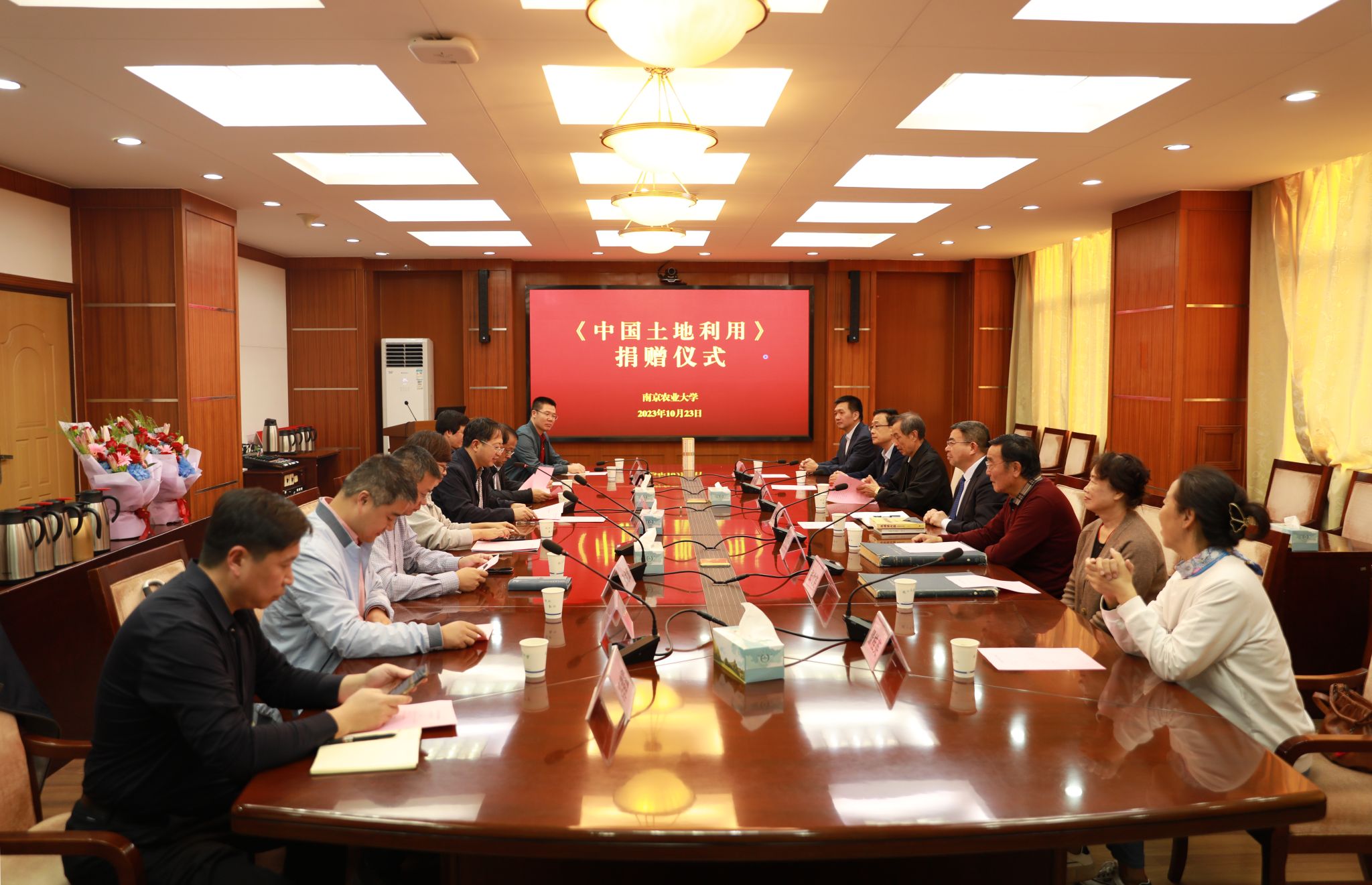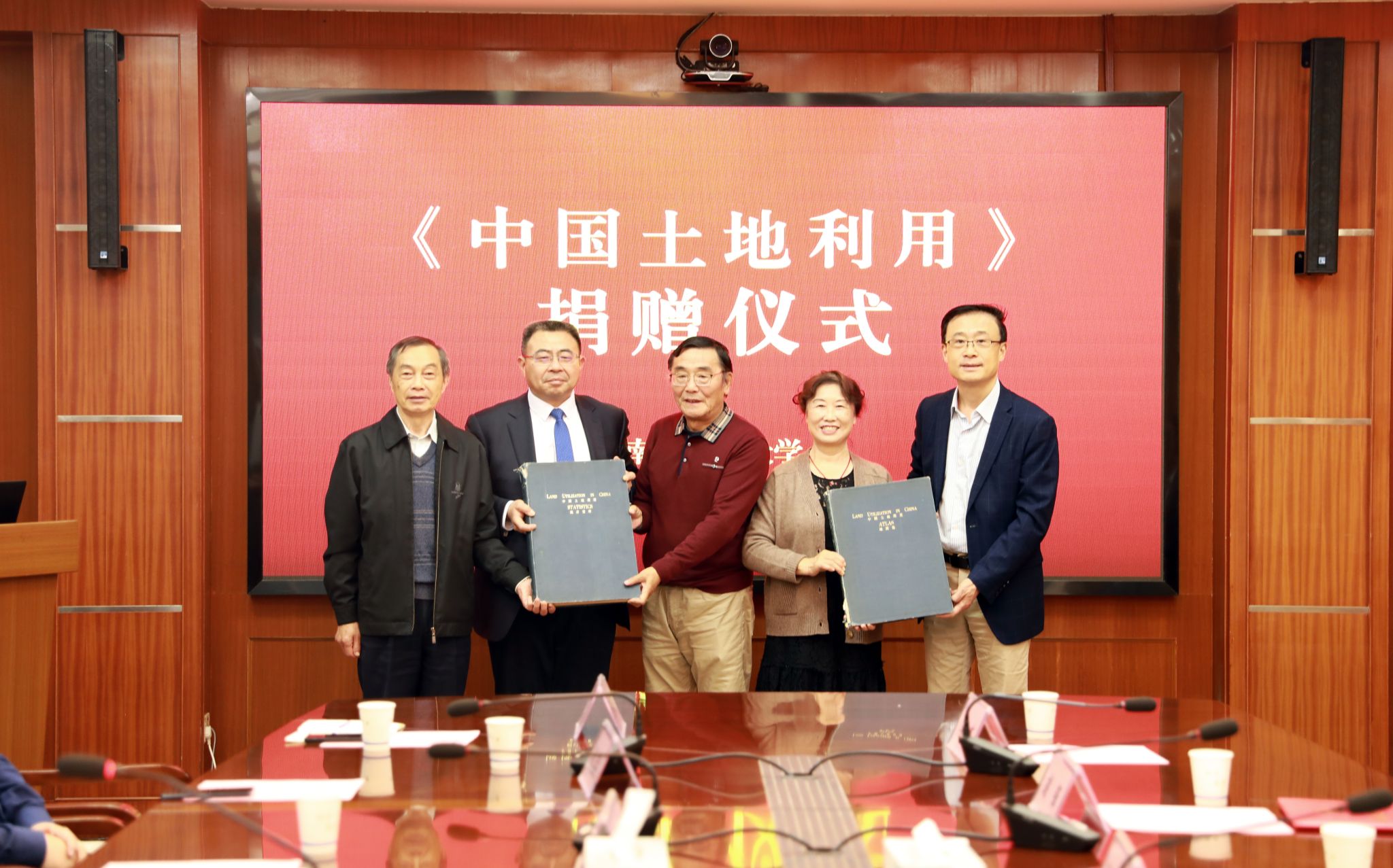 On the afternoon of October 23, the donation ceremony for "Land Use in China" was held in our school. Alumni Chen Minglang and Zhang Zhuying, Vice President Dong Weichun, former Vice Presidents Hu Feng and Sun Jian, and former Archives Director Jing Guiying attended the donation ceremony. The meeting was chaired by Guo Zhongxing, Director of the Library.